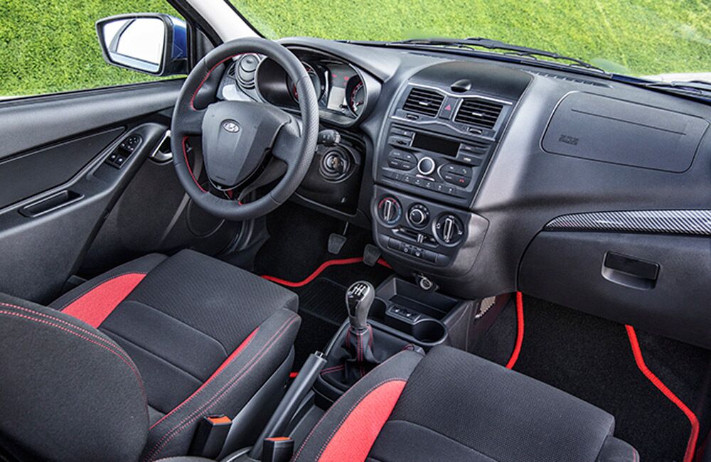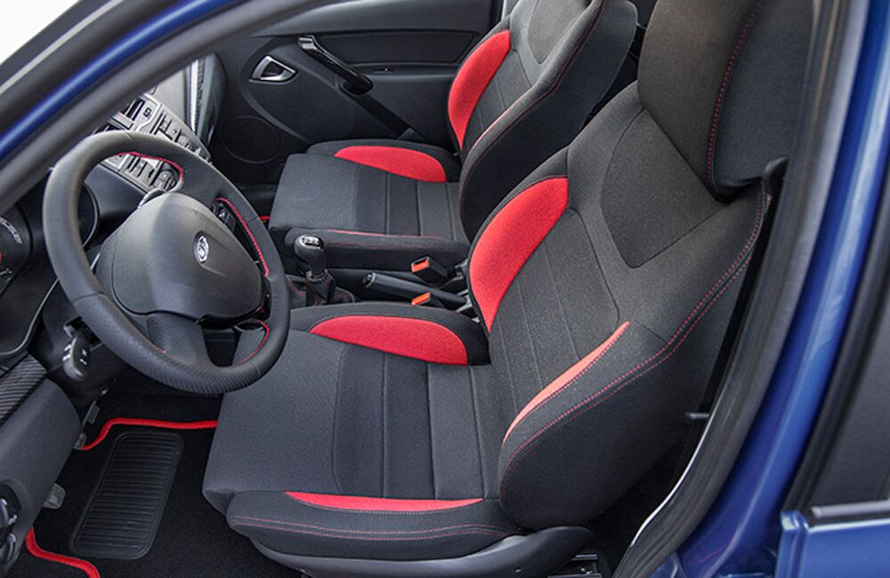 - Обивка сидений ткань. Цвет черный с красными элементами